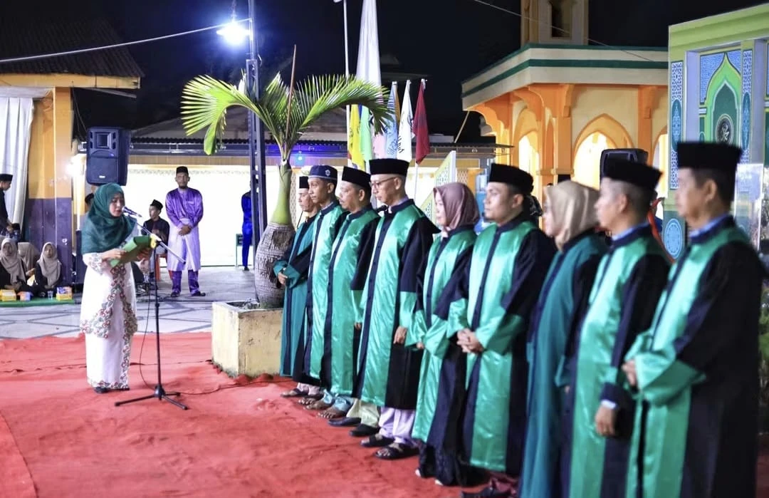 Selatpanjang- Camat Tebing Tinggi Juwita Ratnasari, S.Farm, Apt Bersama Pemerintah Kecamatan Tebing Tinggi Menyambut Kedatangan Bupati Kepulauan Meranti dalam hal ini diwakili Asisten I Drs. M. Mahdis. Ketibaan Bupati Kepulauan Meranti dalam hal ini diwakili oleh Asisten I Drs. M. Mahdis disambut dengan Pemasangan Kalung Bunga oleh Camat Tebing Tinggi Juwita Ratnasari, S.Farm, Apt, diiringi kompang serta penampilan Pebcak silat di Halaman Masjid Nurul Iman, Jalan Budaya Selatpanjang , Senin ( 24/11/2025 ) malam.